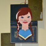 In their form and structure, the students’ works also evoke cubism. This artistic direction, which most often is associated with Pablo Picasso, reduced natural, three-dimensional images into two-dimensional shapes. This technique is evident in Julie Murphy’s “The Tenth Doctor,” in which the subject’s features are cut into geometric shapes and fitted back together like puzzle pieces slightly askew. In Devon Moore’s “Arnold,” it is the background books that take on a two-dimensional geometric format. The same can be said of “Mom” by Victoria Enfinger.